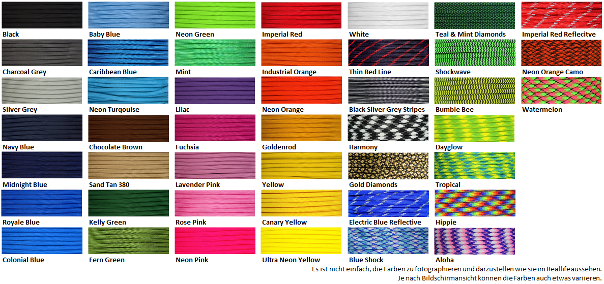 Farbübersicht Paracord