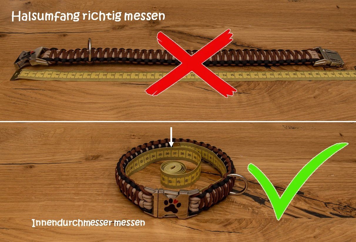 Um die richtige Halsbandlänge festzulegen, kannst du ein gut sitzendes, vorhandenes Halsband messen. WICHTIG: den Innendurchmesser beim geschlossenen Halsband messen!